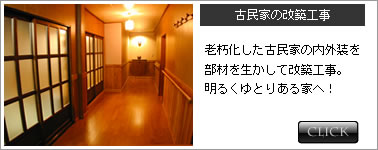 住宅や店舗をリフォームをするにあたって 一番頭を悩ませるのは 「依頼先の選択」だと思います。 「見積もりの一番安い業者に決めようか」 「大手に依頼しようかな・・」 など様々な 考えがある事と思いますが、 せっかくのリフォームを成功させる重要なポイントは、営業マンでも現場監督でもなく、工事を一番理解している実際に現場を手掛ける設計施工会社にお客様の思いや考えを、いかに伝える事ができるかにあると思います。 当社は、現場を熟知している大工職人ならではの技術と経験を持って、 計画から施工・引渡までの全過程を、お客様の現場を担当する一職人が全て行います。 実際に現場を手掛ける職人が、直接お客様のお話しを伺い設計することにより、 話の食い違いなどが生じず、工事の仕上がりをより一層お客様のイメージに近づける事が出来るのではないかと考えます。 下記ではリフォームのいくつかの例をご紹介しております。大半のリフォームや改装工事につきましてはお客様のご予算内で、機能性ながらもデザインを重視したリフォームが可能となっております。「この予算で、こんな感じにしたいんだけど」などというご希望がございましたら、御気軽にお問い合わせくださいませ。見積もりは全て無料となっております。